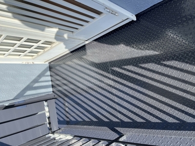 特に劣化が激しかった踊り場部分は、鉄板を張り、溶接で補強したうえで塗装を行いました。 下地補修を適切に行うことで、仕上がりの美しさだけでなく、耐久性・安全性の向上にもつながります