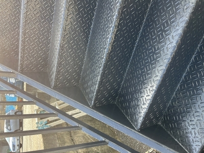 鉄骨階段の塗装工事を行いました。 塗装前には、錆を丁寧に除去し、下地をしっかりと整えています。